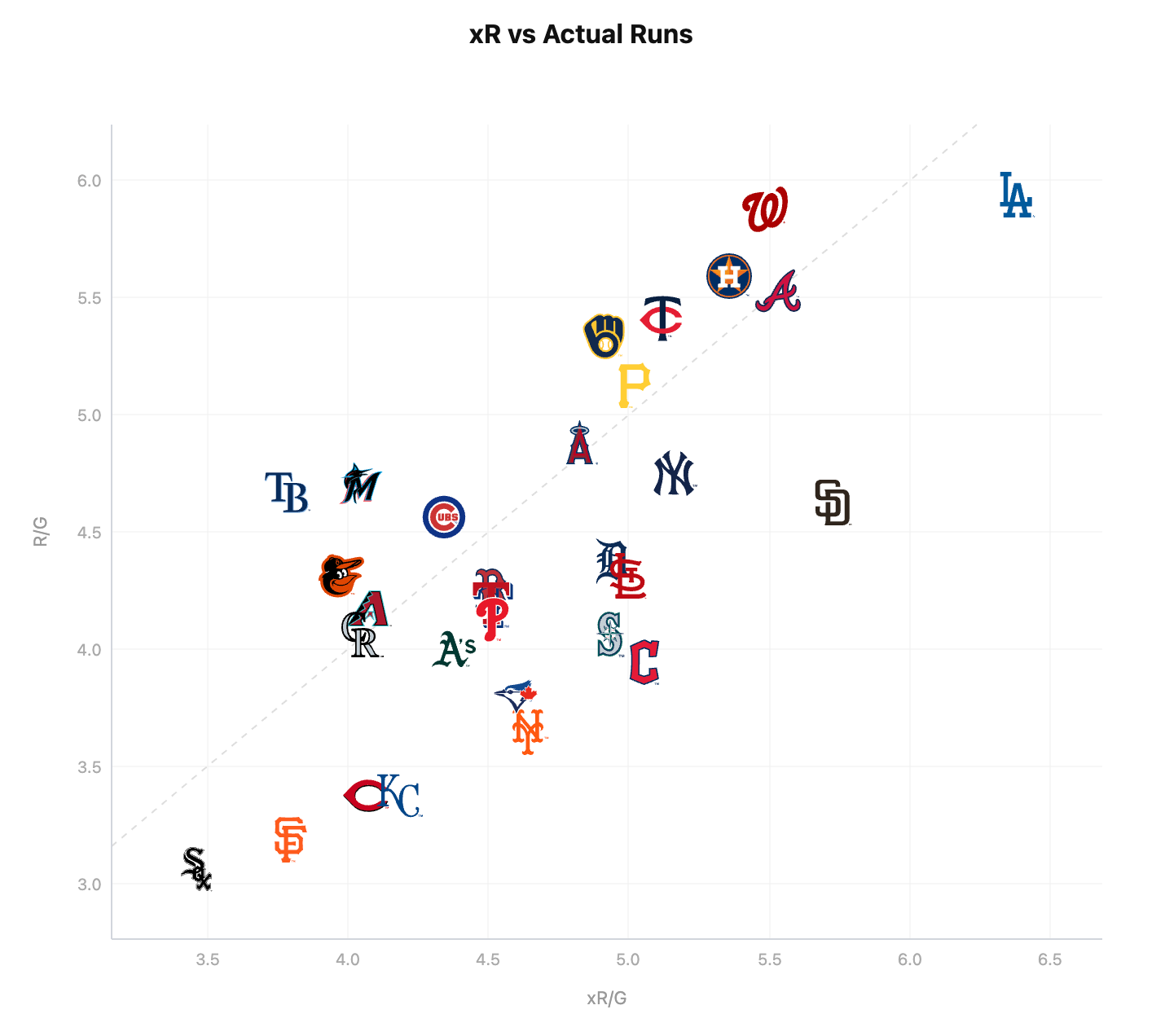 Despite all that, they're just 16th in runs scored. It's hard to attribute that to bad luck: Their .317 BABIP ranks 3rd in MLB, they've outperformed their xwOBA by .022 points and they've outscored their expected runs scored by about a third of a run per game, according to the site xR Philosophy.